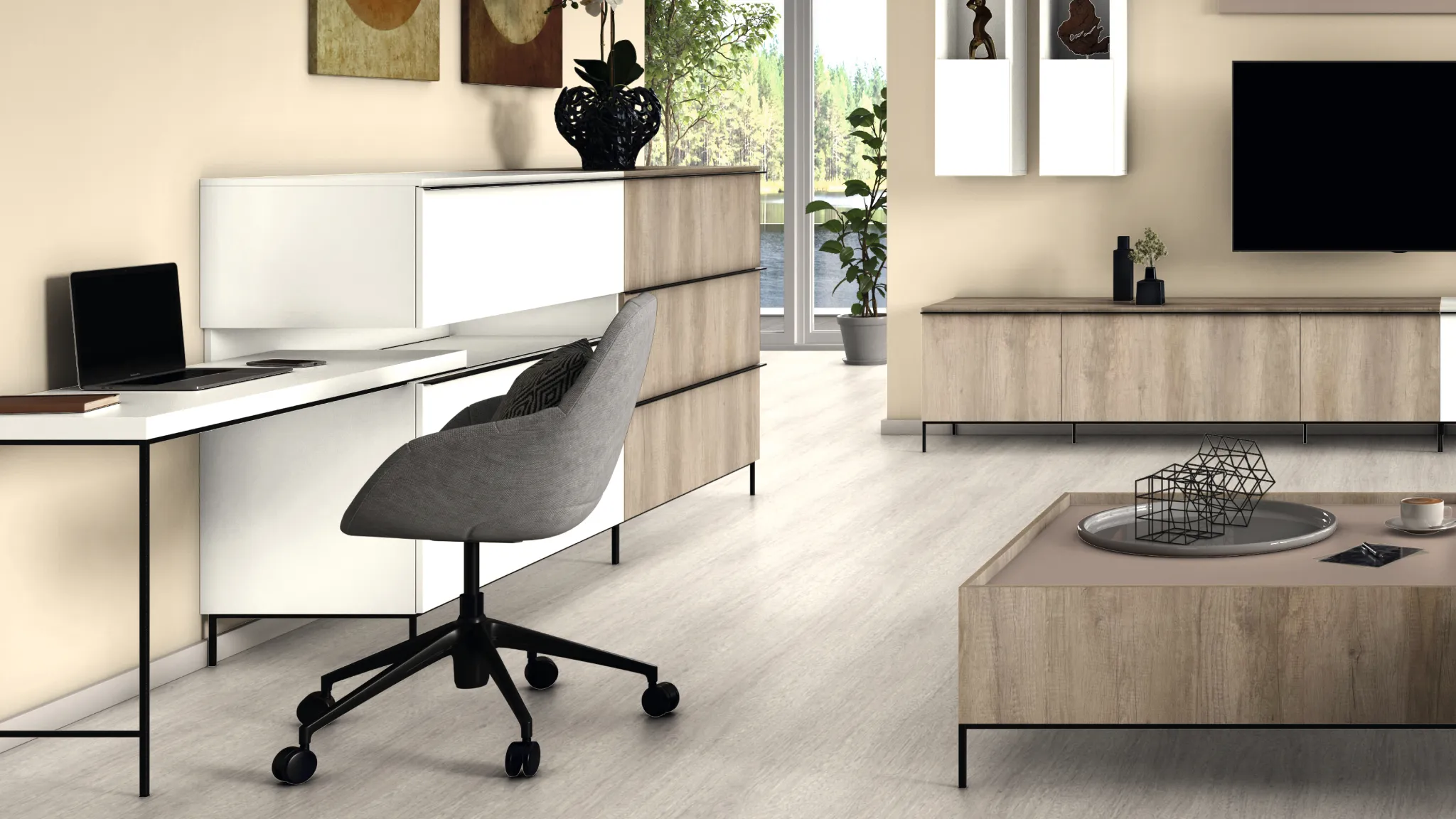 Το σχέδιο H3332 Grey Nebraska Oak παρουσιάζει μια τραχιά και παλαιωμένη εικόνα σχεδίου. Αυτό υποστηρίζεται περαιτέρω από το γκρι χρώμα. Η υφή επιφάνειας ST10 Deepskin Rough προσφέρει μια αυθεντική αίσθηση στην οπτικά τραχιά επιφάνεια ξύλου. Στο σχεδιαστικό concept της EGGER Interior Match, αυτό το σχέδιο είναι ίδιο με το πάτωμα Design Green Tec EPD003 από τη Συλλογή Πατωμάτων EGGER PRO 2021+.